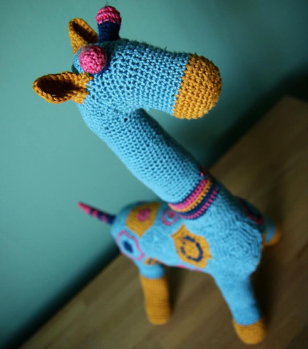 In the end of 2019, my friend Elin’s daughter Märta was baptised in a beautiful ceremony. This had to be properly celebrated! I crocheted her a blue giraffe. Total improvisation, it turned out almost as big as her. I’m told she likes it.