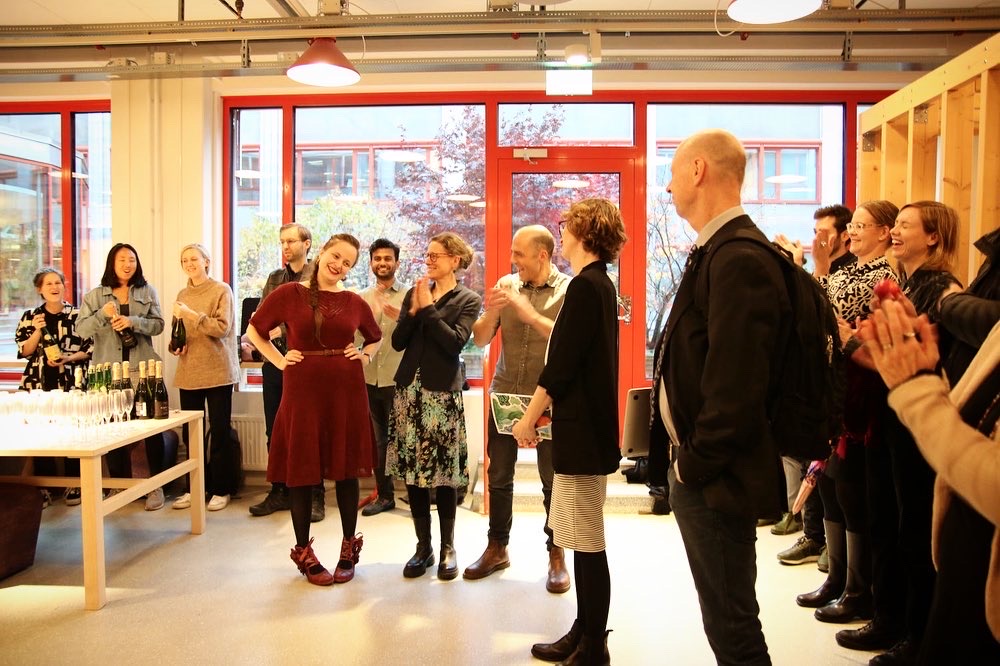 Around my one year anniversary in Bergen, I finally sat down with the defense photographs. The dress is great. I look tired, yes, but also happy. And! So many people around me, looking so happy for me. And at the party: Like they are enjoying themselves.