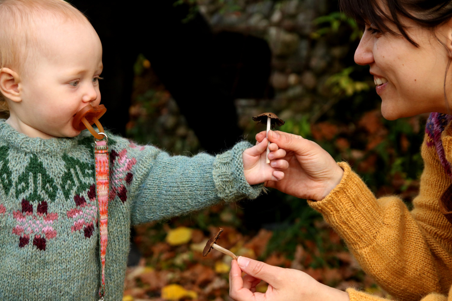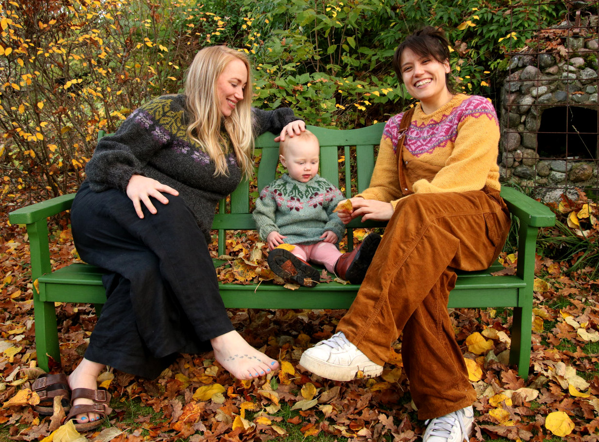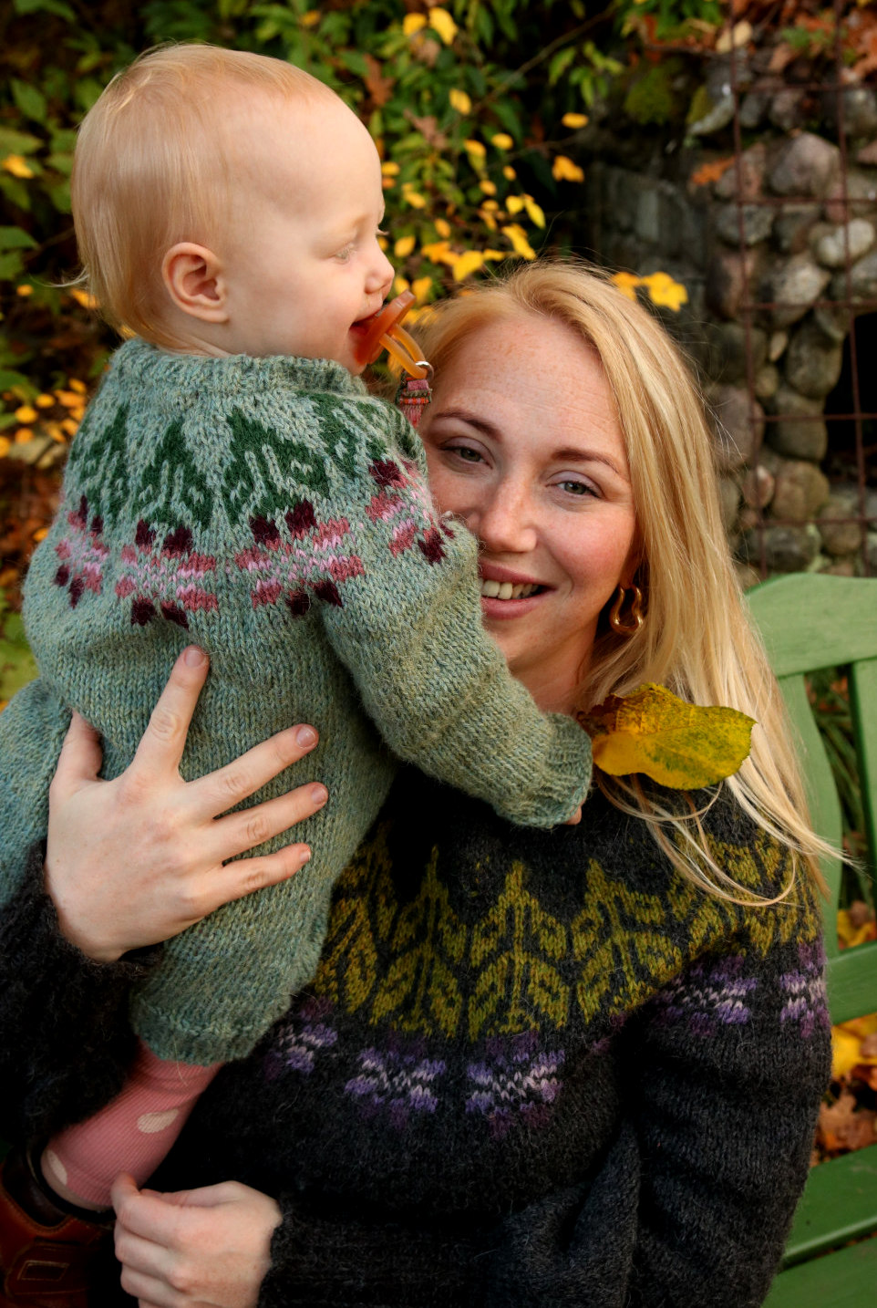 So, when I had the idea of knitting matching jumpers for their whole family (overly-ambitious projects make me feel so alive – it’s a problem…), I decided to design a yoke-pattern with flowers, to celebrate Cecilia’s green thumb. Same pattern with different, but matching colors for the whole family, made in soft alpaca wool.
