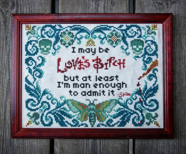 So I made her this cross-stitch for her 34th birthday, with a quote from Spike, her favorite Buffy character.