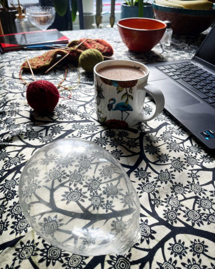 My glass-covered breath lies on my kitchen table, waiting for me to find the breath in my body. To catch up. To see something, in the emptiness that is embraced by the spherical glass.