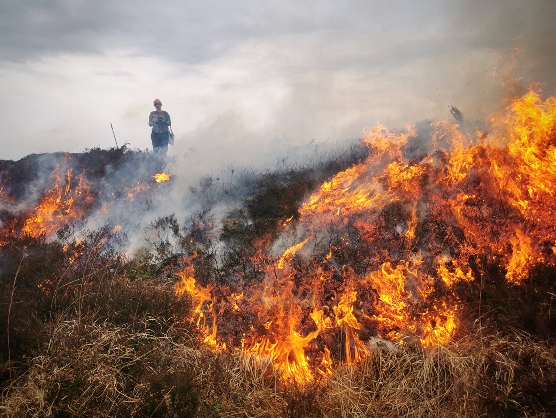 I’ve allowed work to have a slow start, reading up on the original project proposal, the other research conducted by the team I just joined, two field trips. The one this week was to help out with some controlled burning on a heather heath at Lygra heathland cetner. Fire is fascinating, there’s no way around it. Interesting, too, of course, to experience traditional management in practice and to learn about its benefits for the local ecosystem. And to meet some sheep!