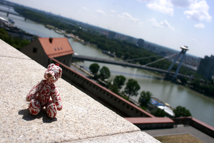 When I finally got up around nine I felt great, however, and after having a Serbian nectarine for breakfast I walked the three blocks to the police station. There, after describing the situation, I was told to come back in an hour, because the translator wouldn’t be able to come until then. So I took a walk up to the Bratislava castle, looked down on the view of the Danube and then walked back through the old town.