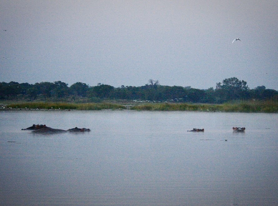 And then we came upon a family of six hippos, floating with eyes and nostrils barely above the water surface. There is a certain kind of magic, with wildlife as big as that. We sat in the boat, the world slowly waking up around us, watching the hippos watching us and it would be silly of me to try to explain.
