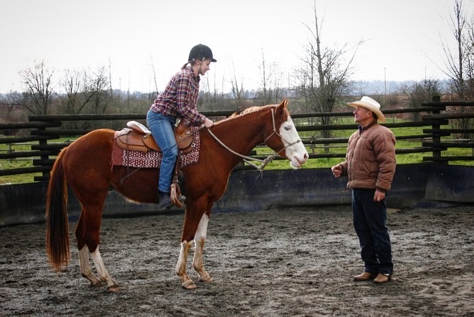 Jay says that cowboys know animals, but don’t really care about riding well, and they can be really rough on their horses while riding. Other western riders are generally much lighter on their horses, but still have the same lack of theoretical knowledge as the cowboys. The English-style-riders, on the other hand, can be really good and know everything about technique and movement, but they don’t know shit about how horses think. What Jay does is combine the two styles and also add his own knowledge and experience from a lifetime of working with horses.
