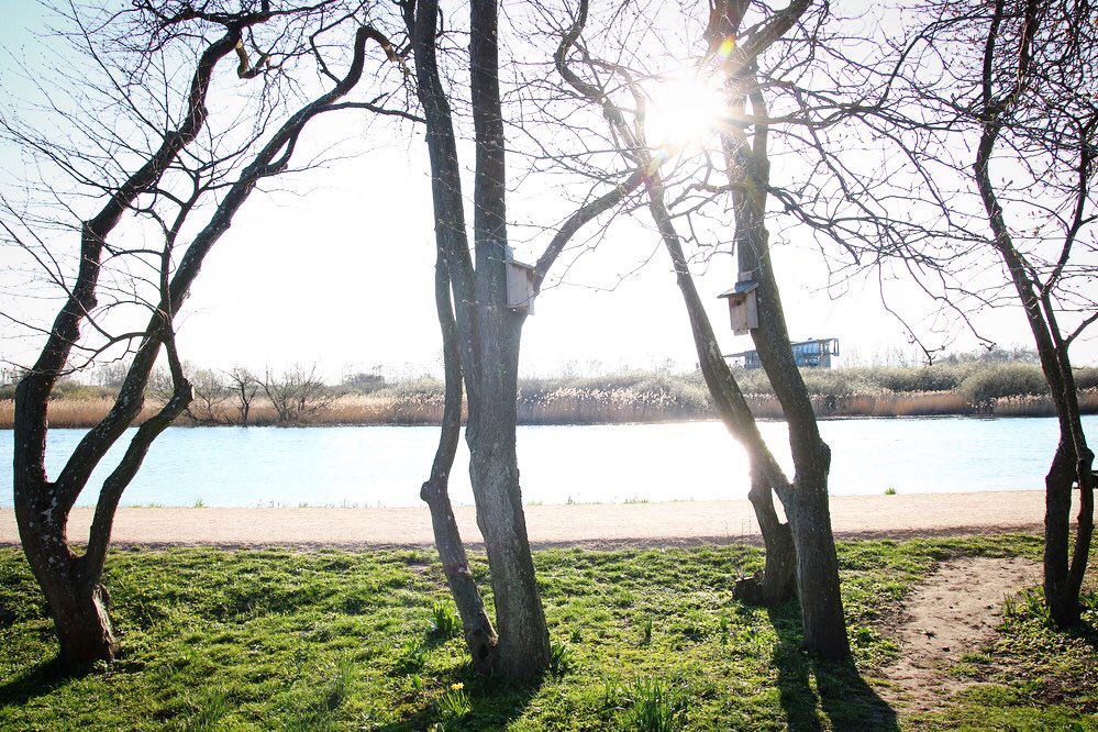Hälsoträdgården (the Health Garden) lies right next to the Helge å river. Across the river, beyond the slowly flowing water and reeds and wetland willows, lies naturum Vattenriket, the visitor’s center in the Kristianstad Vattenrike Biosphere Reserve. A long wooden bridge, with one base at the corner of the Health Garden, connects the city-side bank of the river with the riparian shrubs, groves and fields on the other side. The impressive, reed-like wooden structure of the visitors’ center stands on poles in the middle of the wetland, perfectly blending in with its surroundings. Especially in autumn and spring, when the landscape is rich in nuances of brown, gray and light green. Inside, there are exhibits and a knowledgeable staff, who arrange activities in the visitor’s center and the biosphere reserve, year-round, for kids and adults alike.