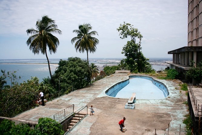 One of the few sights that people recommend in Monrovia when you ask, is the old Ducor Palace Hotel. Or what used to be. It was the first hotel built in Liberia, in 1967, and one of the few five-star hotels in Africa for a long time. It had most things a classy hotel needs, like a pool, a French restaurant and an incredible view. However, it was closed due to the instability in the country in 1989, and during the civil war it was looted, sabotaged and filled with settlers that had nowhere else to go in the war-torn city. And now the disrepair is extensive.