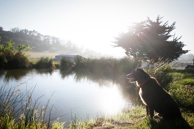 Almost every day, that meant going down to the big pond to swim, play catch with the dogs and read. The water was refreshingly cold. I could’ve spent all of my days by that water, reading and swimming, but by three-ish the wind had usually become too strong and chilly for it to be really comfortable to stay. So, we returned to our rooms and read some more, or took a nap. Some days Lorri taught us how to bake and cook different things in her beautiful kitchen. Other days we took the bicycles and biked for thirty minutes into Sebastopol, where it always, without fail, was at least five degrees warmer than at the farm. Sebastopol was in another valley, not at all as affected by the ocean air.