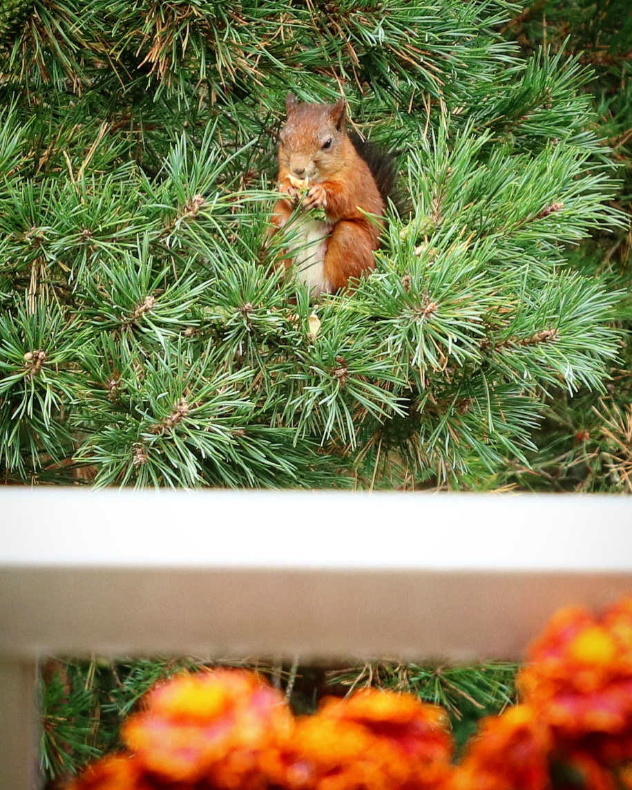 The squirrels are back, jumping with terrifying agility between branches way too far apart, their coats shifted to the grey tones of winter. And the blue tit came by this morning, looking for food in the empty pots where my tomato plants used to grow.