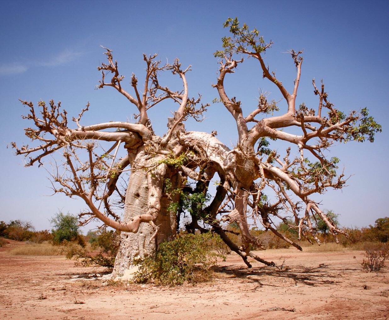 In rural northern Burkina Faso, certain wild trees, shrubs and herbs are actively being managed as integrated parts of the agricultural landscape 3. They are important for food, income, fodder, medicinal uses, crafts and construction, especially during years when cultivated crops fail. These pockets of wild vegetation therefore support the resilience of the communities, while at the same time having a positive impact on biodiversity in the landscape 1. Pictured is a baobab tree (Adansonia digitate)*.